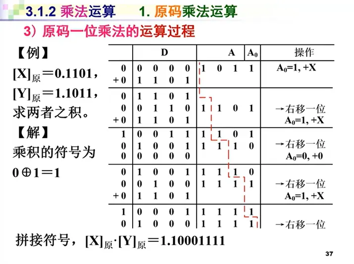 因为是原码,所以符号位单独处理,只考虑绝对值之间的运算。